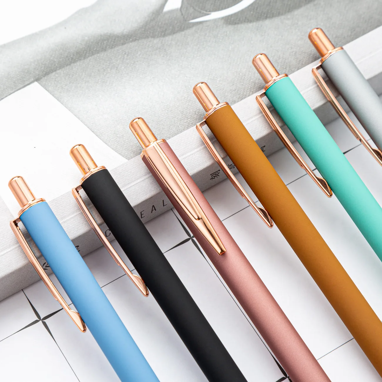 Wholesale Custom Logo Printed Advertising Press Soft Rubber Metal Ballpoint Pen for Business Office Stationery Gift